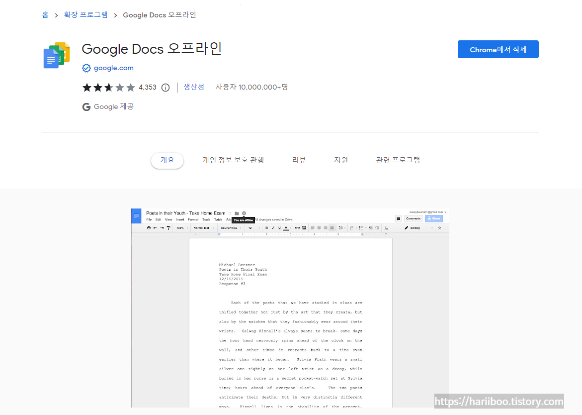 아래 링크를 클릭해 구글 독스 오프라인 확장 프로그램을 설치해주세요.