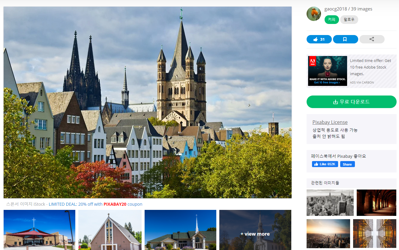 유료지만 소스가 풍부하고 퀄리티가 좋은 사진을 많이 보유하고 있는 것 같습니다.