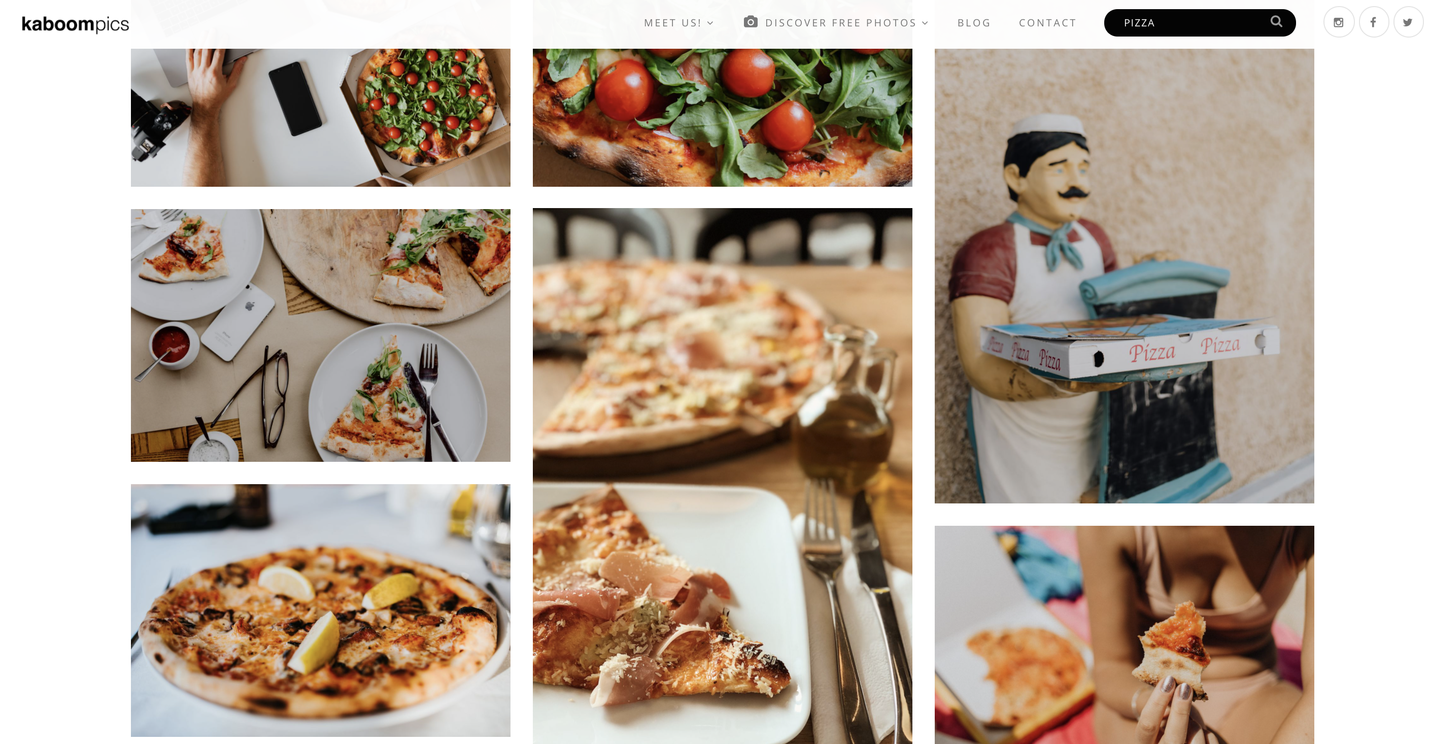 앞서 말한 프리픽에서 찾은 '피자'의 검색 결과, 사진들의 느낌이 차이가 나는 것을 볼 수 있습니다.