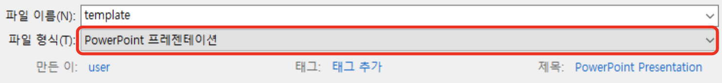 저장하는 창이 열리면, 파일 이름 밑에 파일 형식을 선택할 수 있는 드롭다운 메뉴가 보일 것입니다.