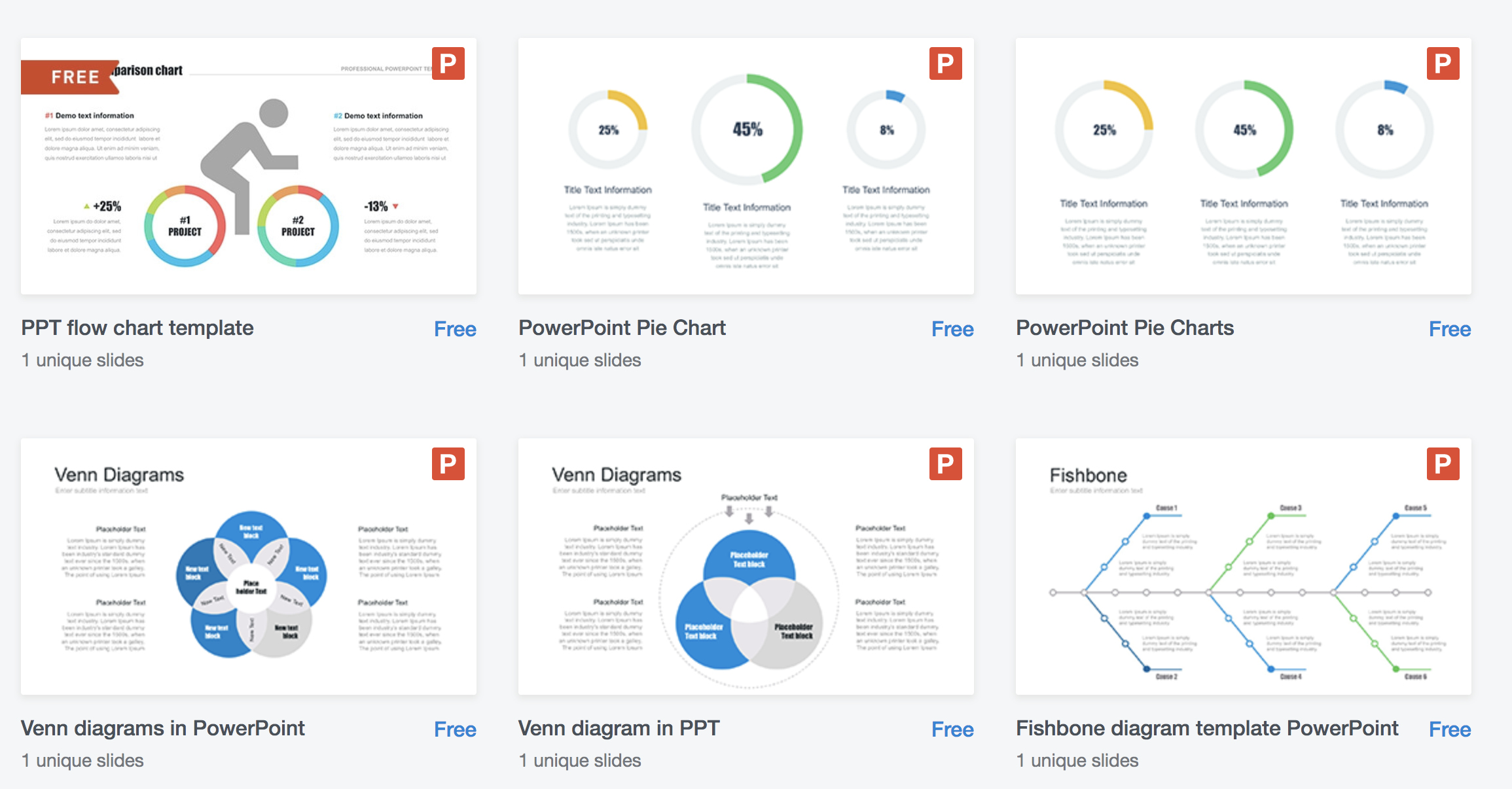 특히 다이어그램, 원형 차트, 타임라인 차트 등을 쉽고 깔끔하게 만들어두어서 다운로드 받아서 약간만 수정해서 사용하기 좋습니다.