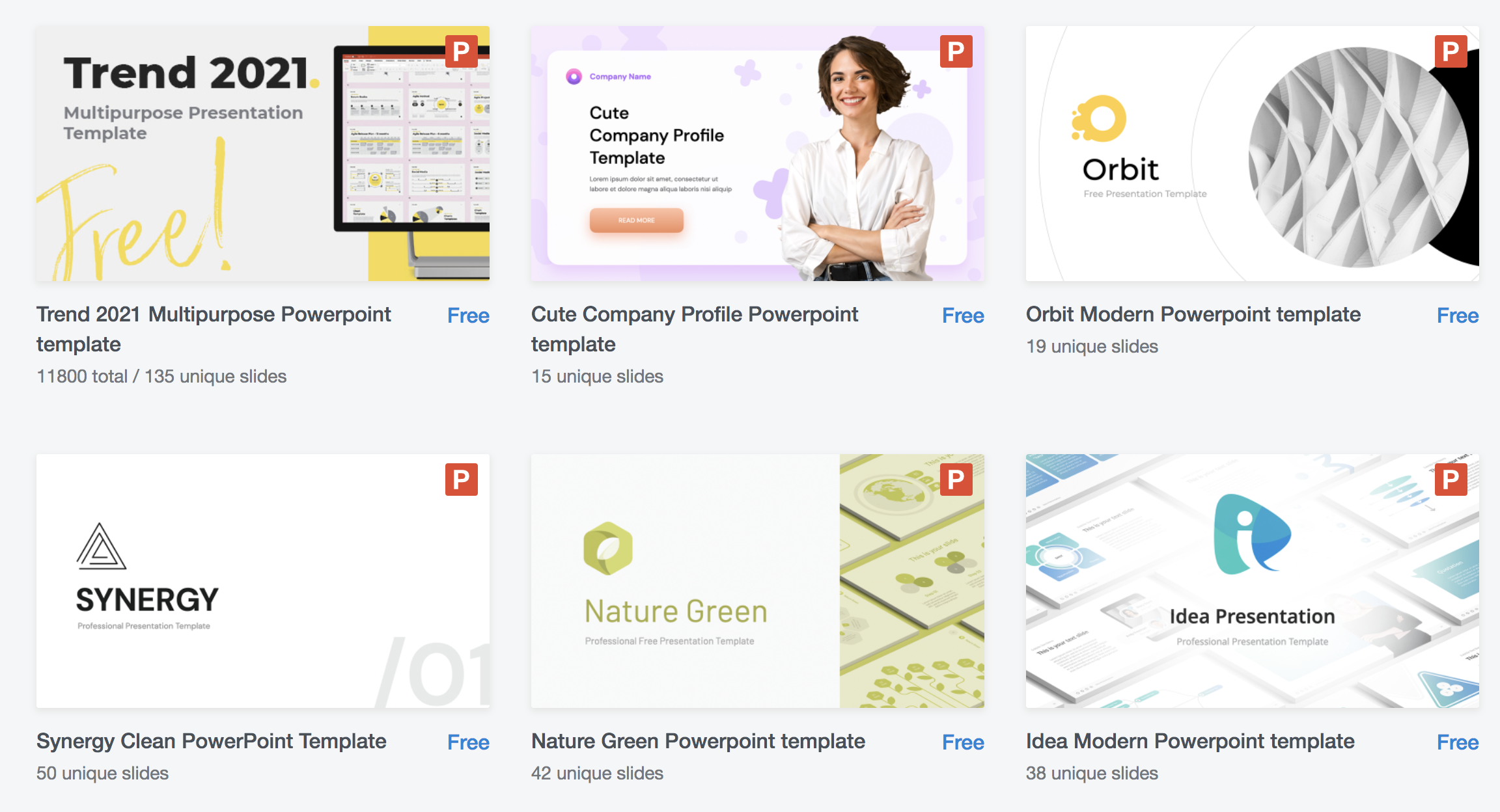 비즈니스나 디자인 같은 전문적인 주제를 위한 템플릿에서부터 특별한 날을 위한 카드, 레쥬메용 ppt 등 까지 다양하게 활용할 수 있는 여러가지 소스가 있기 때문에 파워포인트 제작에 활용하거나 영감을 얻는데 좋은 것 같습니다.