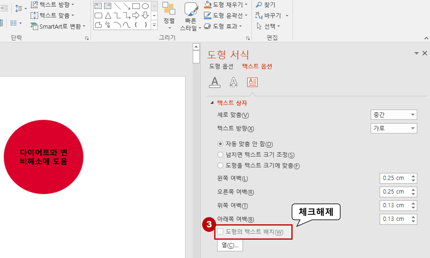 파워포인트 도형 안에 텍스트 자동 정렬 없애기